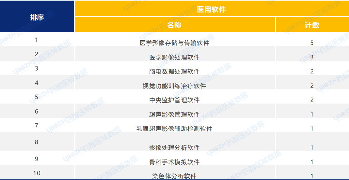 医用软件类医疗器械新产品注册共65项。其中,医学影像存储与传输软件产品注册数量排名第一。