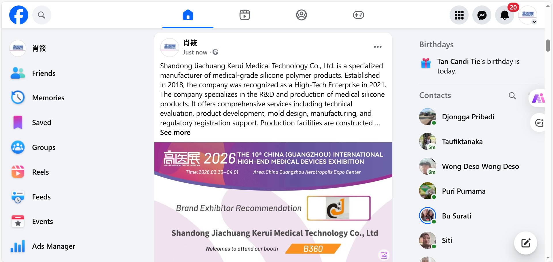 山东佳创科瑞医疗科技有限公司Facebook、推特、领英的推广
