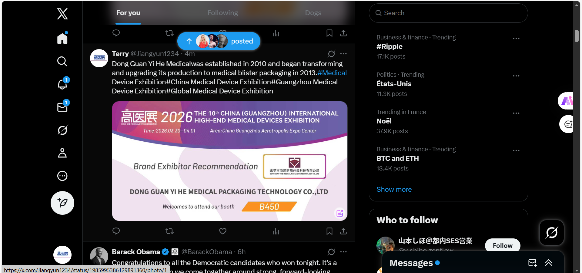 东莞市溢河医用包装科技有限公司Facebook、推特、领英的推广
