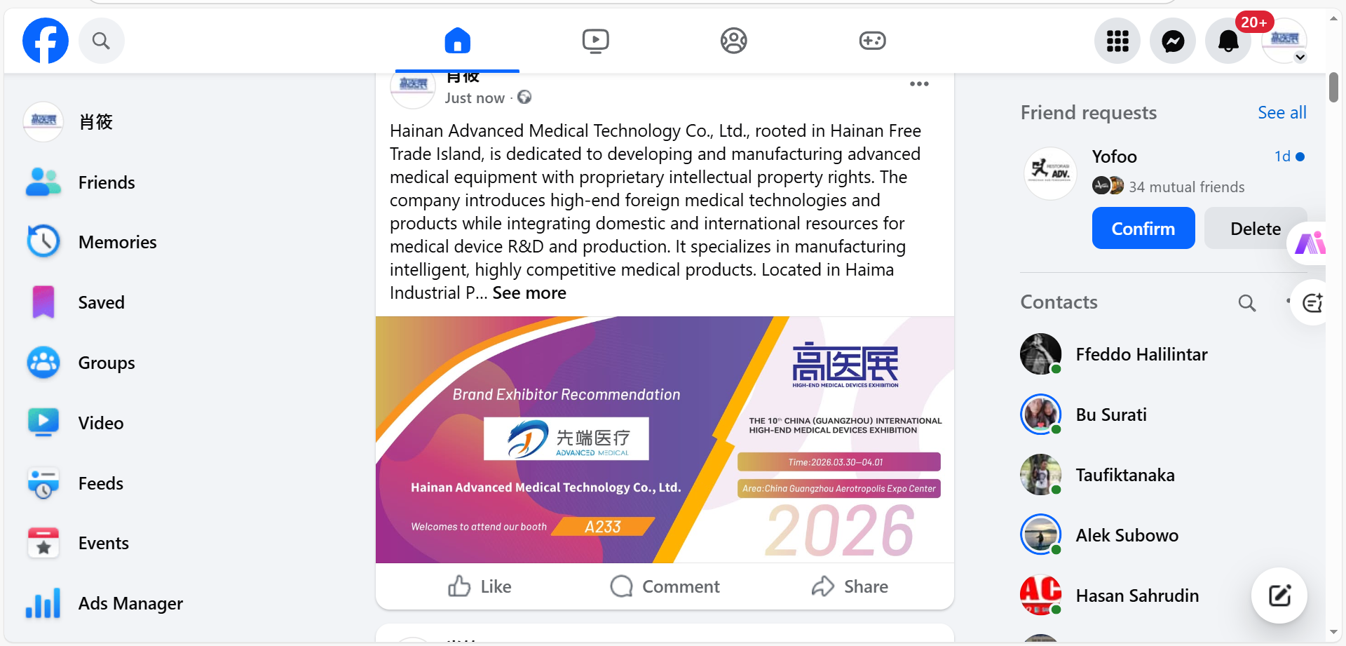 海南先端医疗科技有限公司Facebook、推特、领英的推广