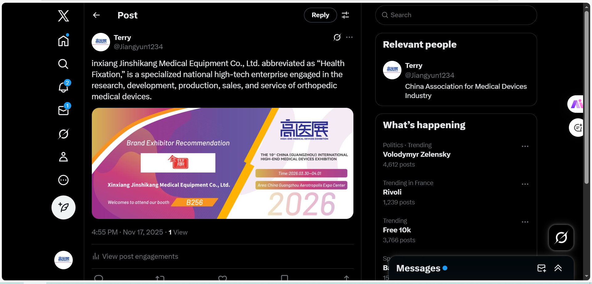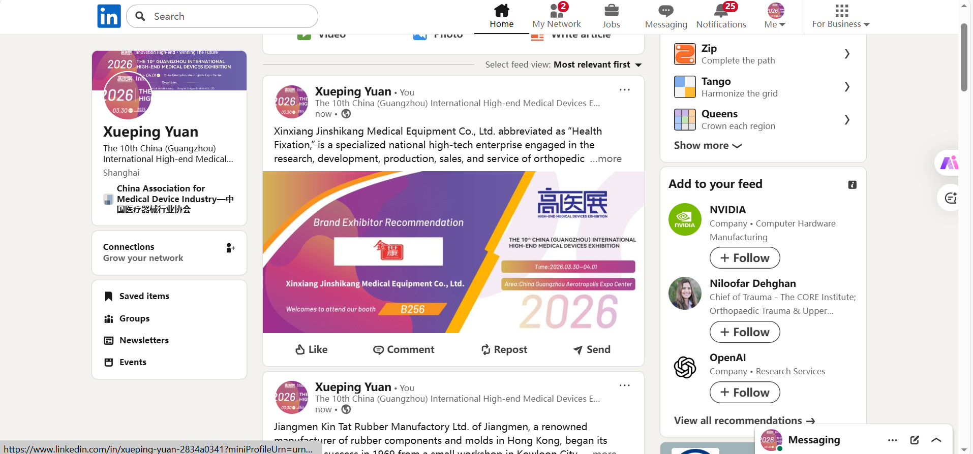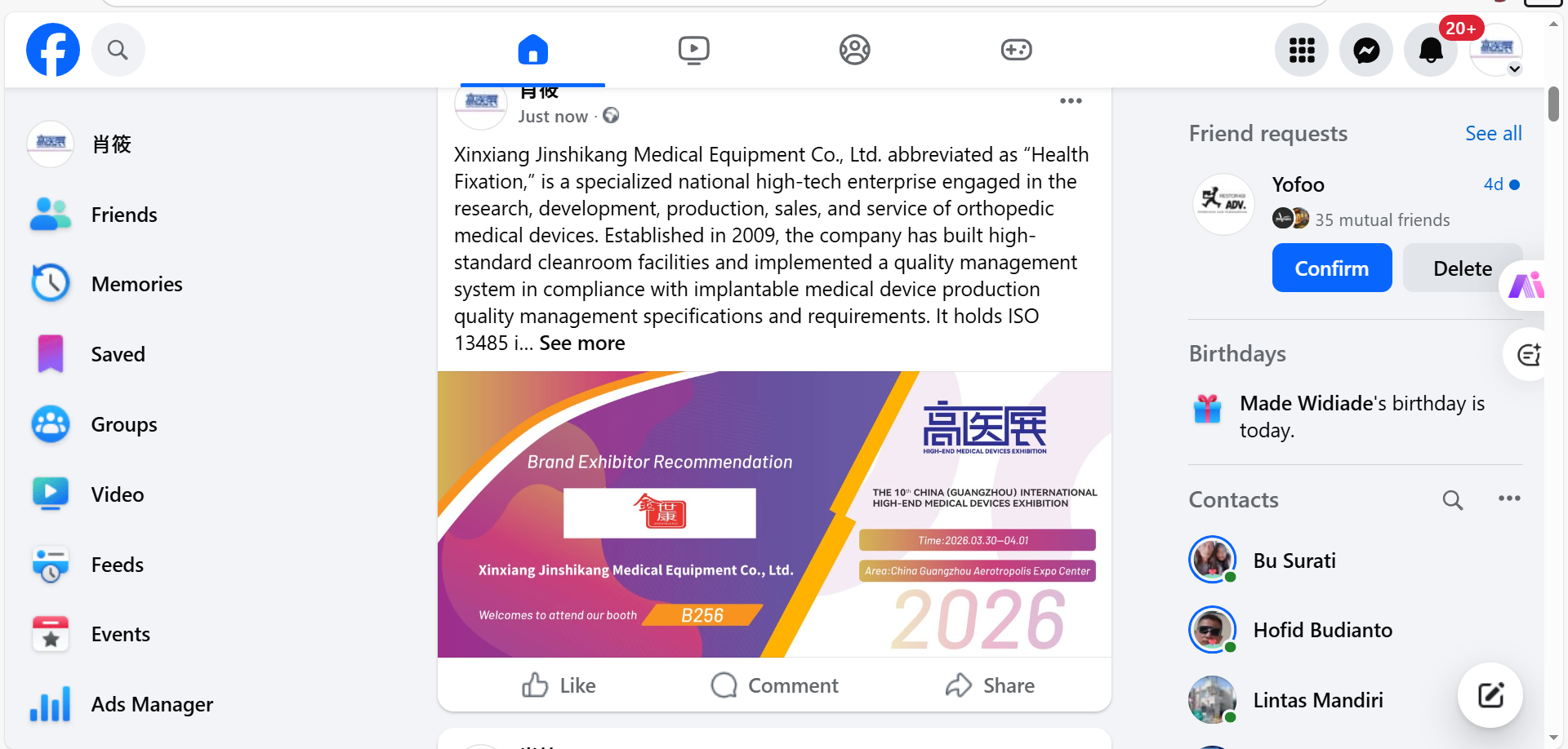 新乡市金世康医疗器械有限公司Facebook、推特、领英的推广