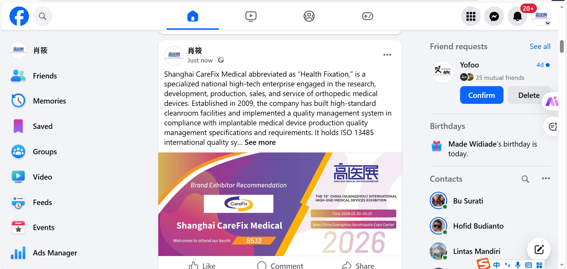 上海康定医疗器械有限公司Facebook、推特、领英的推广