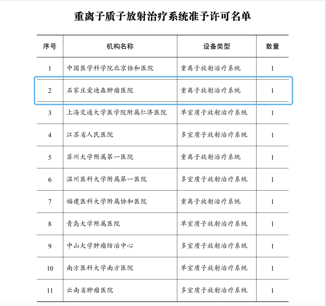 近日,国家卫健委公布《2024年第二轮甲类大型医用设备配置许可结果》,11家医疗机构获批开展质子、重离子治疗,包括中国医学科学院北京协和医院、 江苏省人民医院、中山大学肿瘤防治中心等,石家庄爱迪森肿瘤医院是名单中唯一一家民营医疗机构。